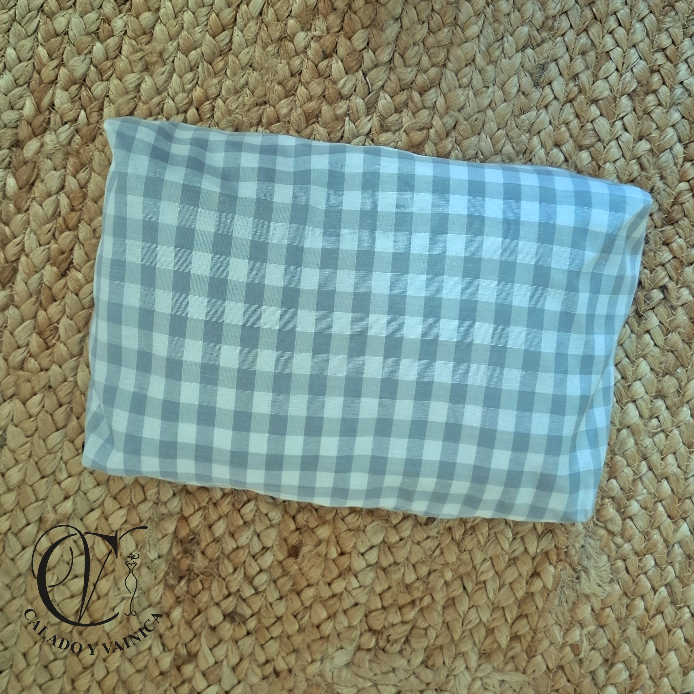 Maxi neceser vichy en tonos grises con nombre personalizado.